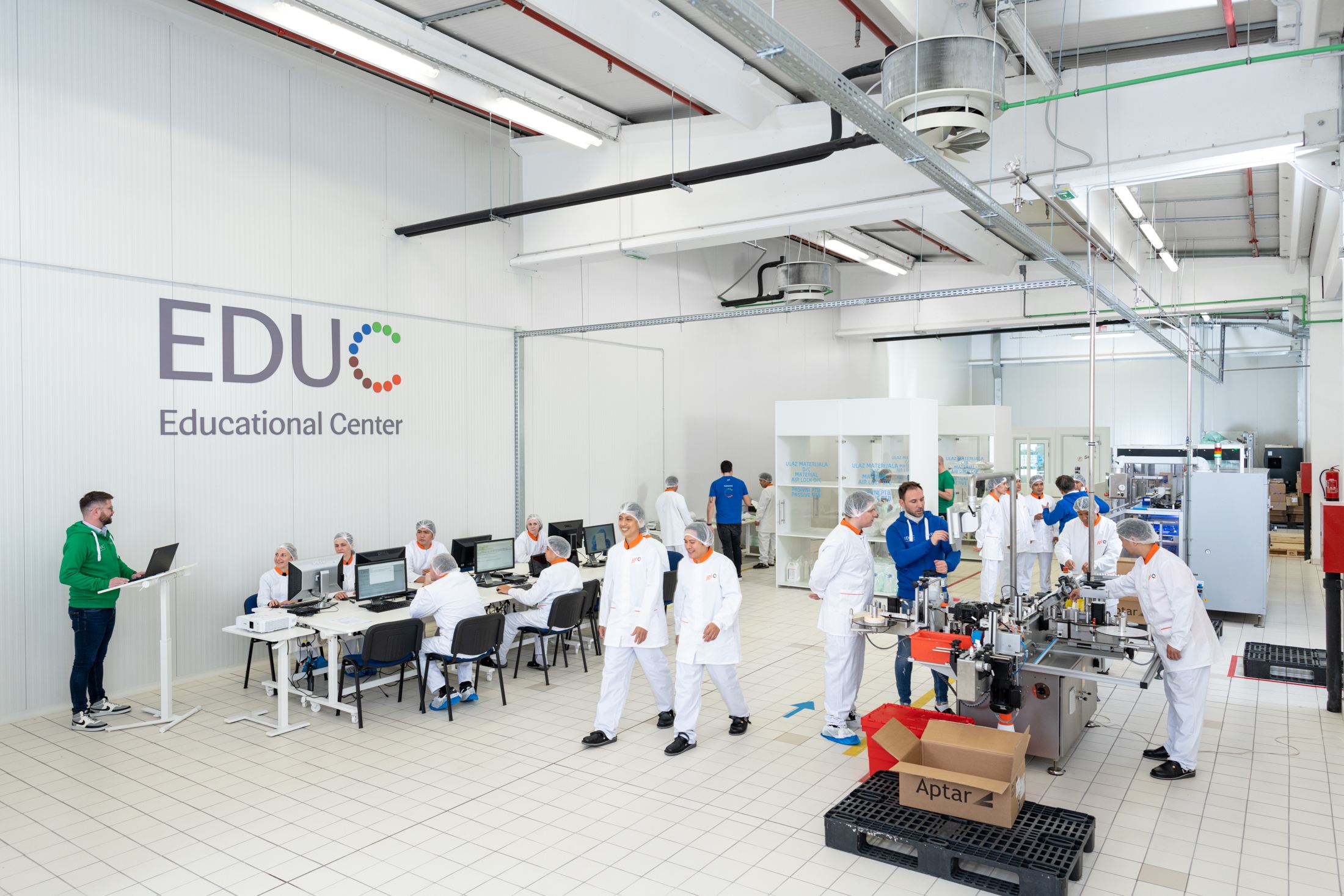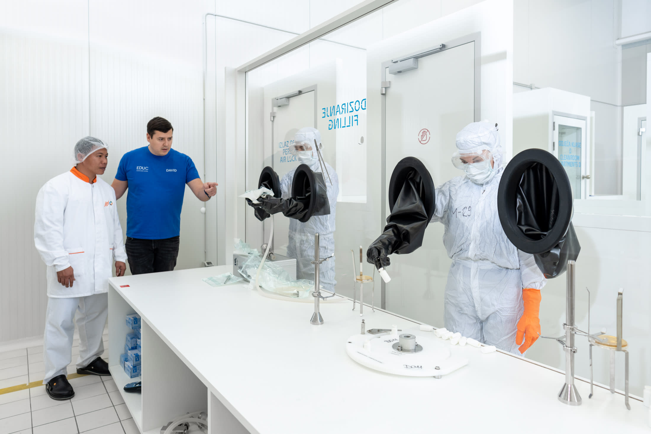 Special focus within the tailored training was given to preparing sterile dispensing operators. New employees selected for these demanding roles completed an intensive programme that combined theoretical knowledge and hands-on practice – covering proper gowning procedures for A/B cleanroom environments, hands-on training at EDUC workstations, and two weeks of practical work on a dispenser in Production. During this time, they tackled simulated downtimes that typically occur in real production settings.