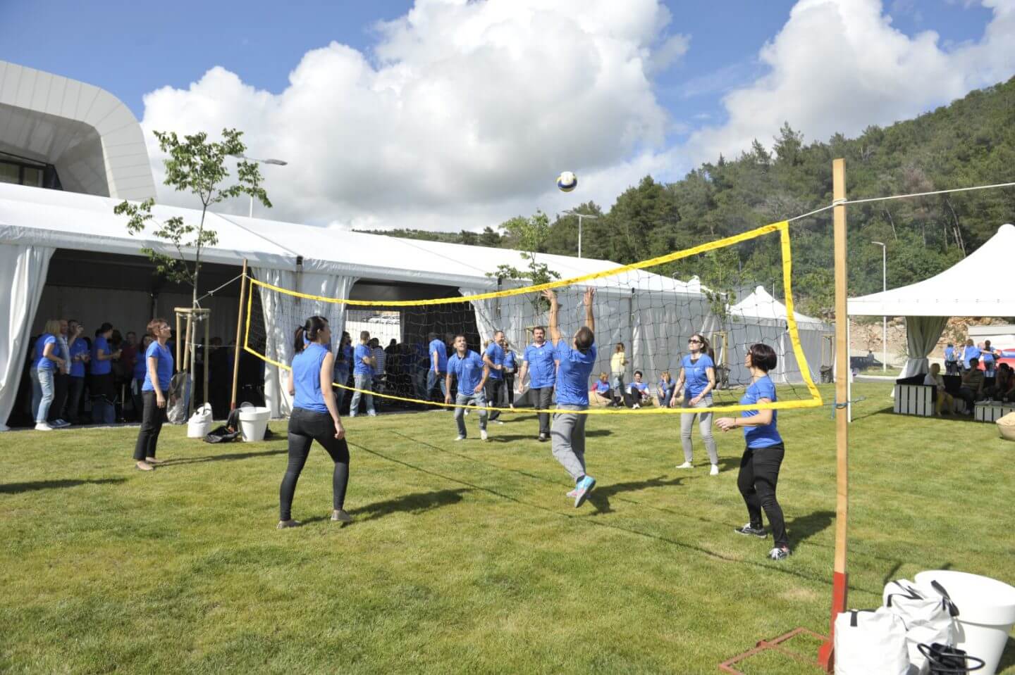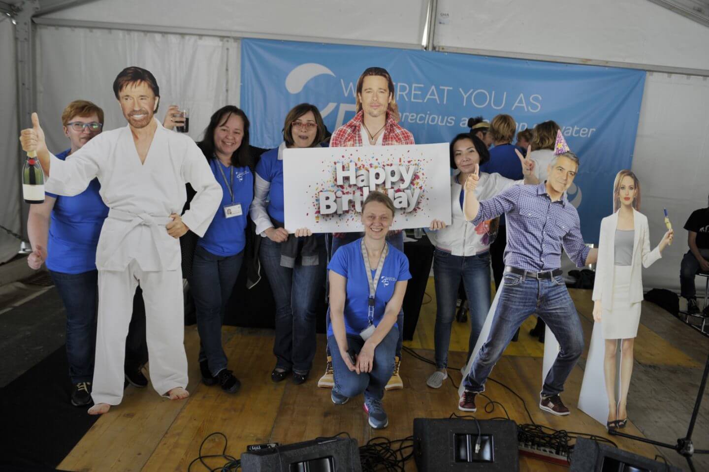 More than five hundred JGL employees took part in friendly sports competitions. A so-called millennium photograph of all the attendees forming the shape of a drop, the company trademark, was also taken.